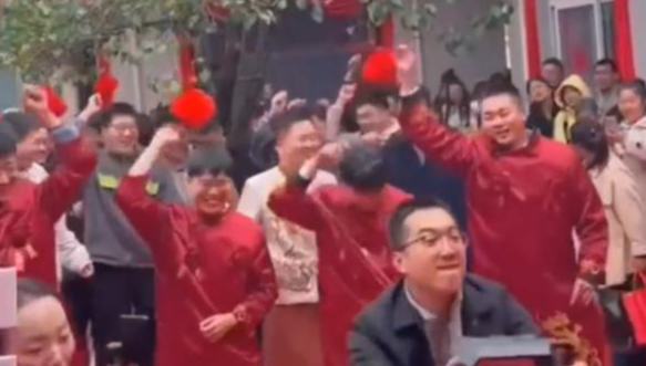 新郎接親伴郎熱舞亮相 發小手持音響領舞排面拉滿